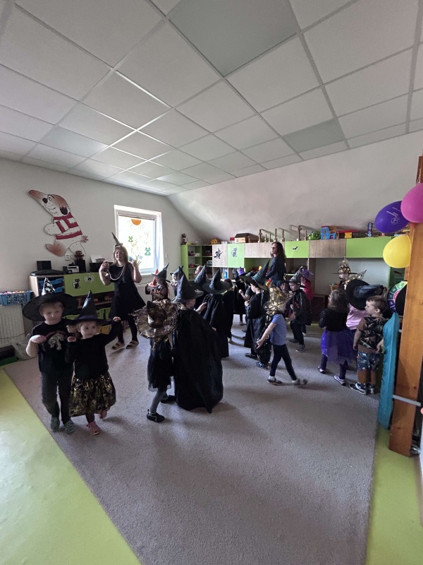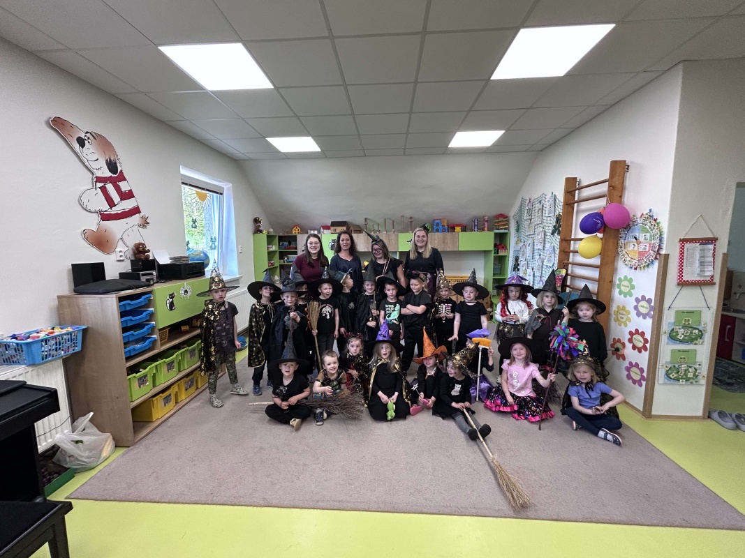 V úterý 29. dubna nás ve školce čekal opravdu kouzelný den. Děti přišly oblečené v úžasných kostýmech čarodějnic a čarodějů – nechyběly klobouky, pláště ani kouzelné hůlky. Společně jsme si užili veselé čarodějnické tancování, zahráli jsme si pohybovou hru „Na sochy“, proletěli slalomovou dráhu na koštěti a také jsme si vyzkoušeli, jaké to je prohodit míček pavučinou. Celé dopoledne bylo plné smíchu, radosti a čarovné atmosféry. Děkujeme všem dětem i rodičům za nápadité převleky – dnešní den jsme si opravdu užili!