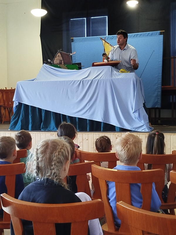 Dnes k nám do sálu kulturního domu přijel loutkoherec Jan Hrubec se svým divadlem. Děti zhlédly pohádku o rybáři Giuseppem a jeho ženě Margaritě, kteří se zapletli s kouzelnou rybkou. Žena si přála stále víc - od chaloupky až po paláce a život papeže. Nakonec si ale Giuseppe přál zase obyčejný život a oba pochopili, že nejlépe je jim v jejich malé chaloupce. Dětem se představení velmi líbilo a budeme se těšit na další setkání.