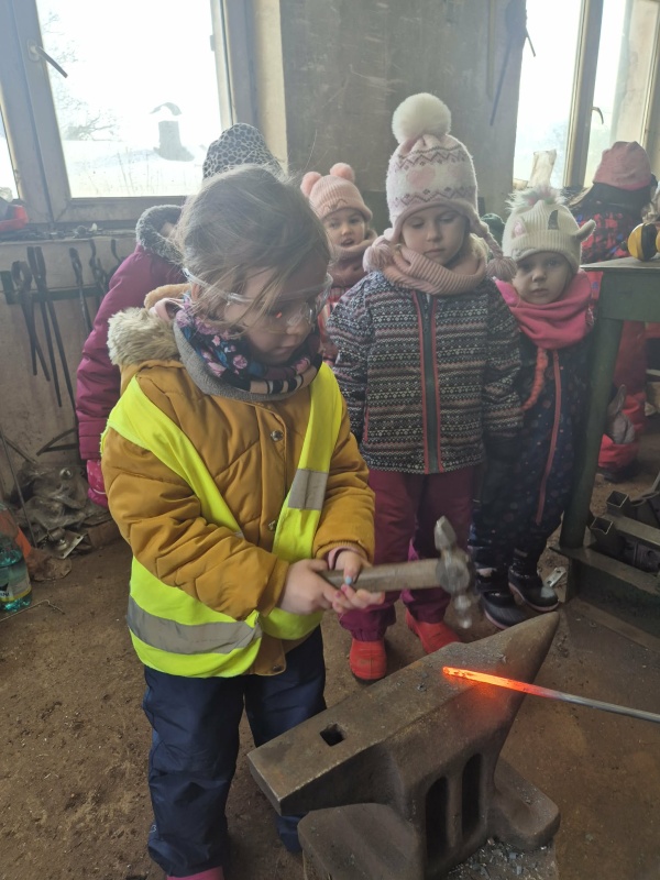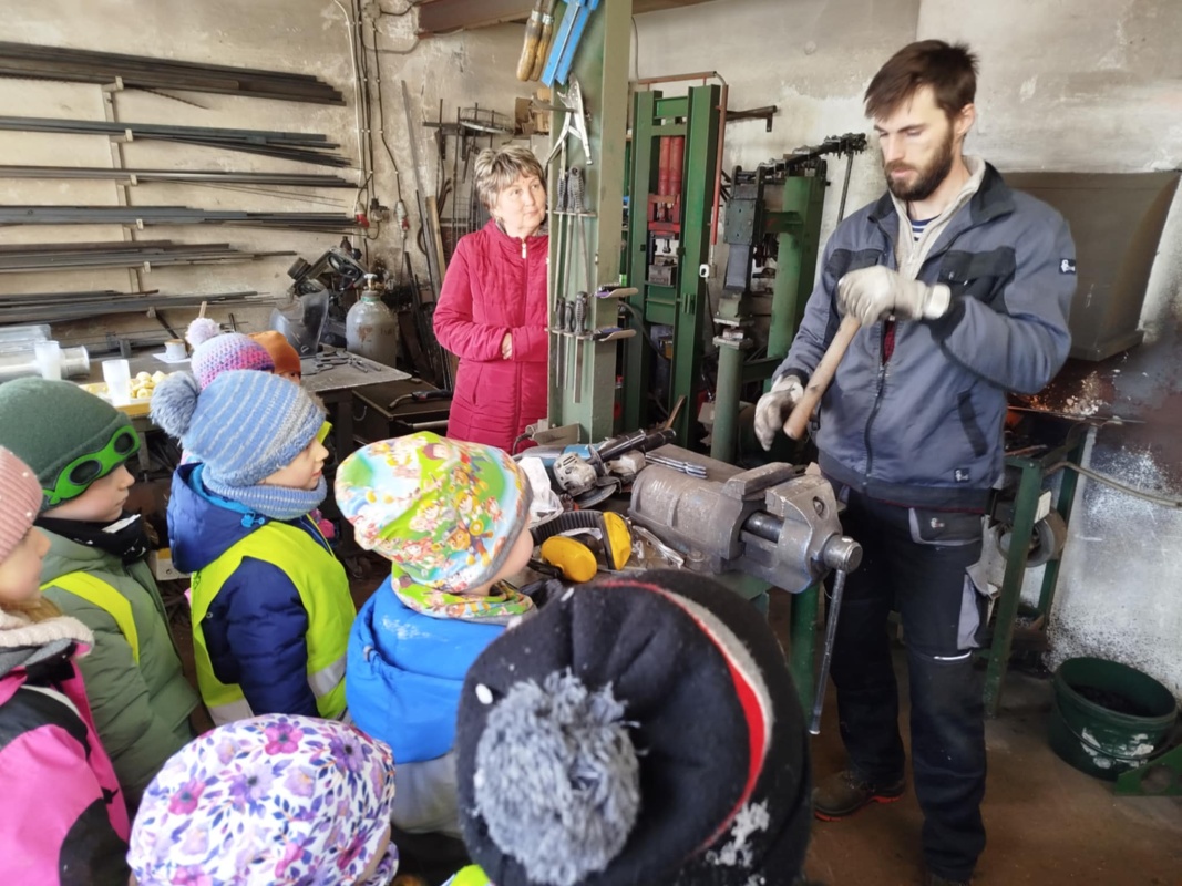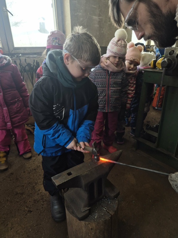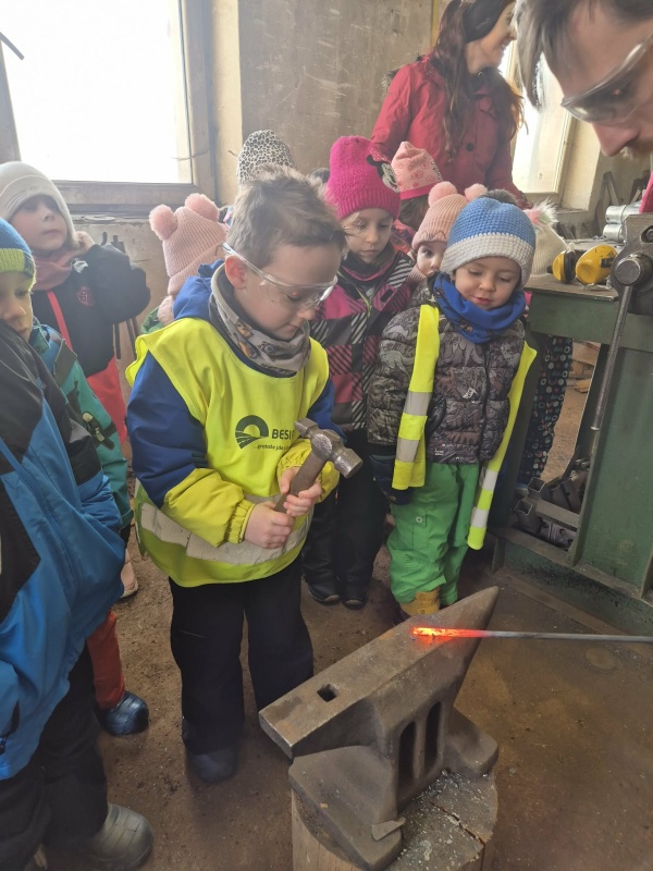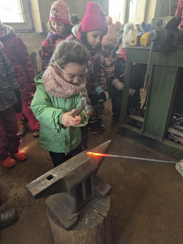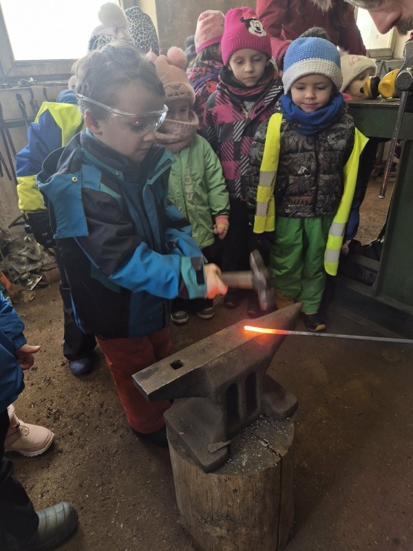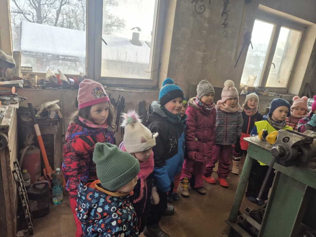V rámci tématu povolání děti obou tříd mateřské školy navštívili zemědělství a kovárnu Šemíkovi. Děti si prohlédla hospodářská zvířata, dozvěděly se více o práci zemědělce a v kovárně měly jedinečnou příležitost vidět práci kováře. Pod odborným dohledem si kování také samy vyzkoušely.