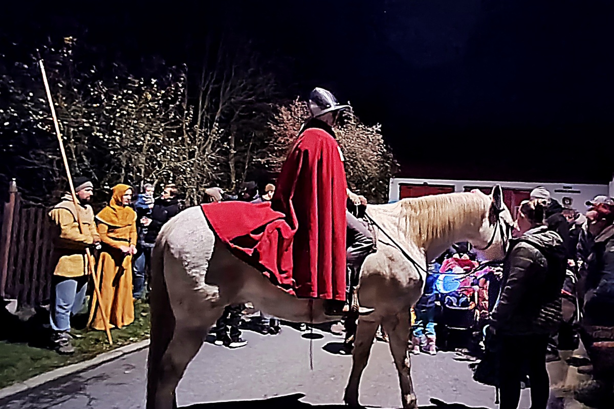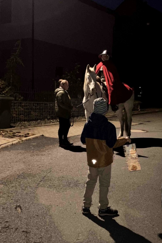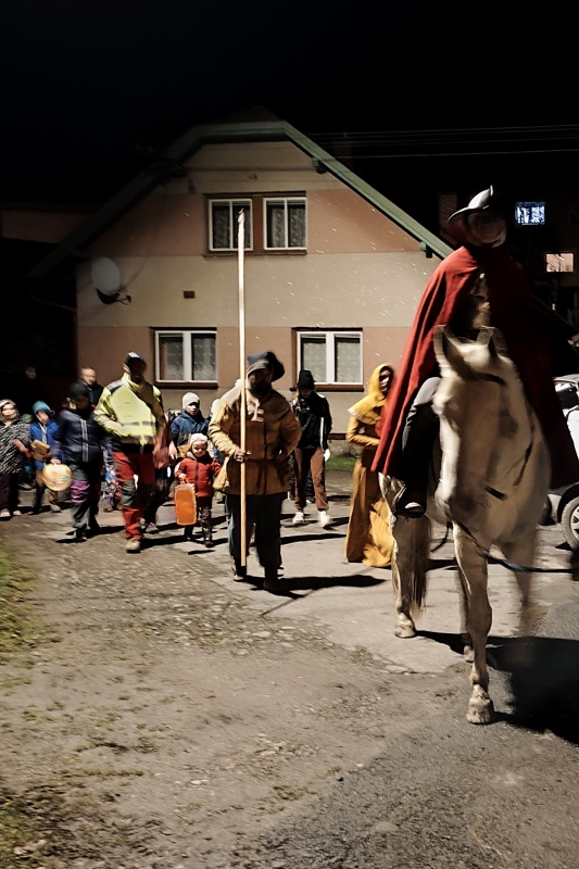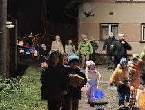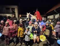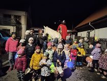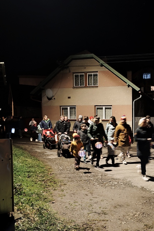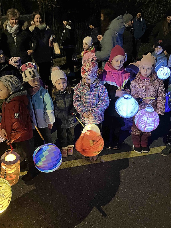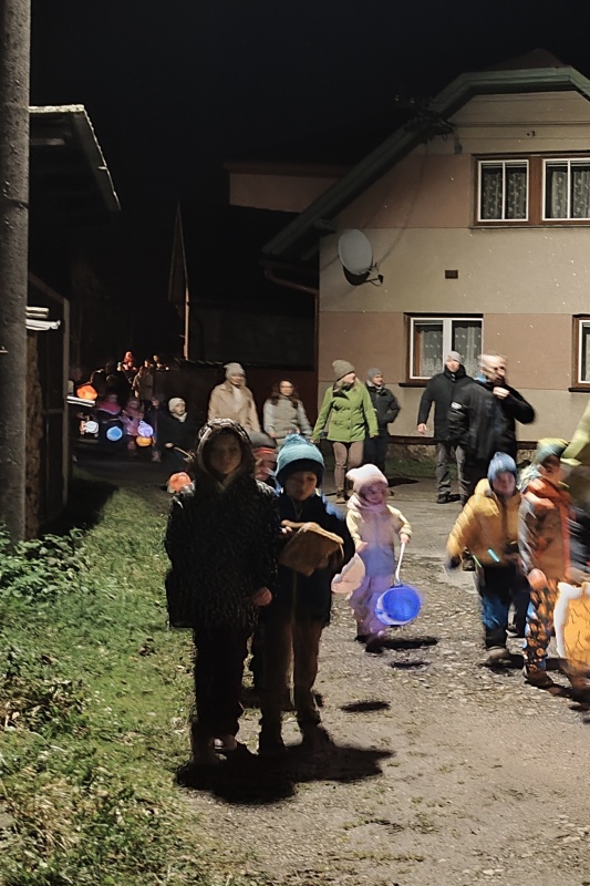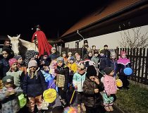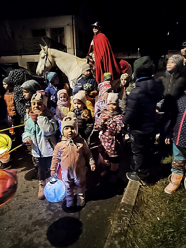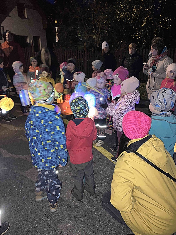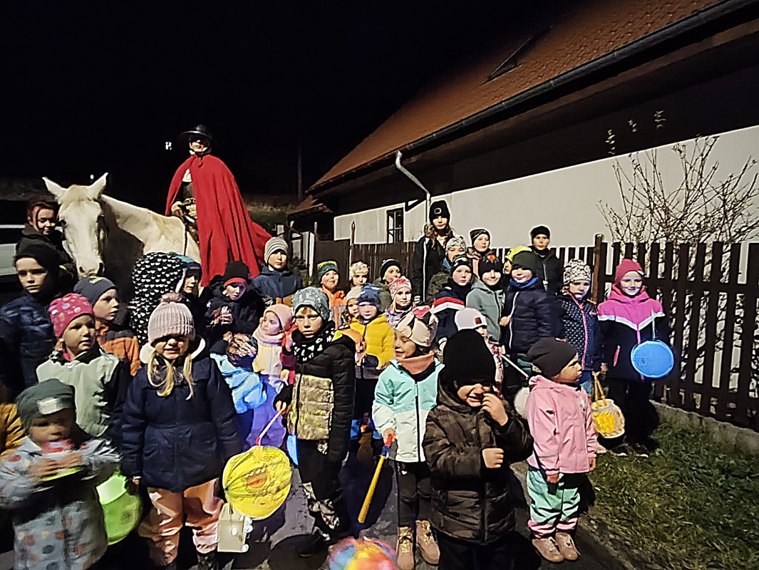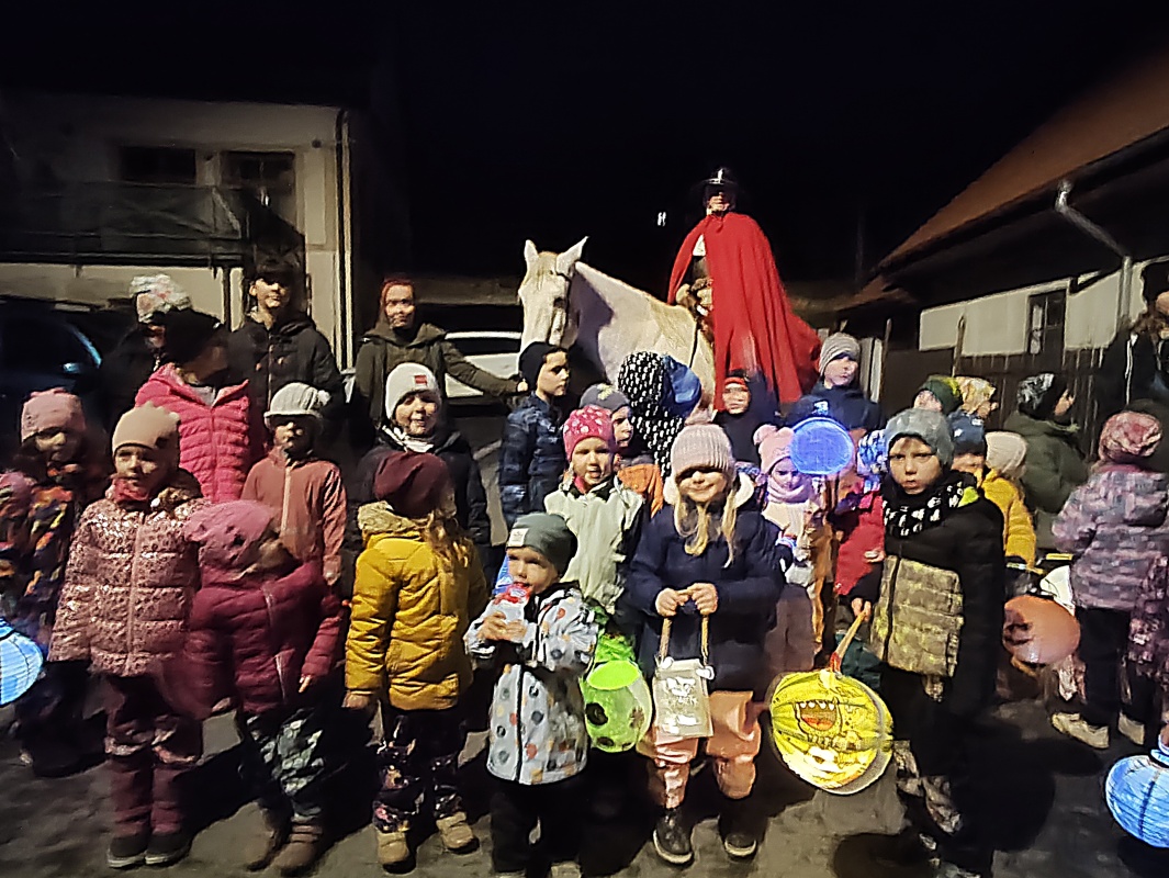 V úterý 11. 11. 2025 jsme se v podvečer sešli před novou hasičskou zbrojnicí, abychom si připomněli svátek sv. Martina. Nejprve jsme s dětmi zazpívali písničku, která zvala svatého Martina do vsi a pak už jsme čekali na příjezd jezdce na bílém koni. Svatý Martin na bílém koni opravdu přijel a dokonce dětem slíbil, že ltos budou Vánoce určitě bílé. Poté jsme se s rozsvícenými lampiony vydali po obci. Průvod vedl svatý Martin na koni. V cíli jsme si všichni pochutnali na svatomartinských rohlíčkách, které upekly šikovné maminky. Děkujeme všem za účast.