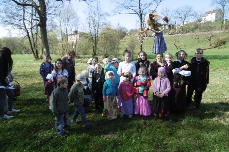 Za doprovodu písniček a říkadel jsme vynesli zimu- Moranu ze vsi a poslali ji po vodě pryč. Nazpátek do vsi jsme přišli s Létéčkem a doufáme, že jsme s ním  přinesli i pěkné počasí .