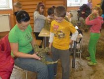 V pátek 15. března jsme strávili příjemný podvečer při vyrábění velikonočních dekorací ze sena. Rodiče společně s dětmi vyrobili a pak dozdobili velikonoční zajíce a slepičky s kohouty. Hitem letošní velikonoční dílničky se však staly myšky a téměř každá rodina si jednu myšku ze sena odnášela domů. Velký dík patří paní Dobrovolné, která všem trpělivě vysvětlovala postup a pomáhala při výrobě zvířátek. To, jak se nám dařilo, můžete posoudit z následujících fotografií.