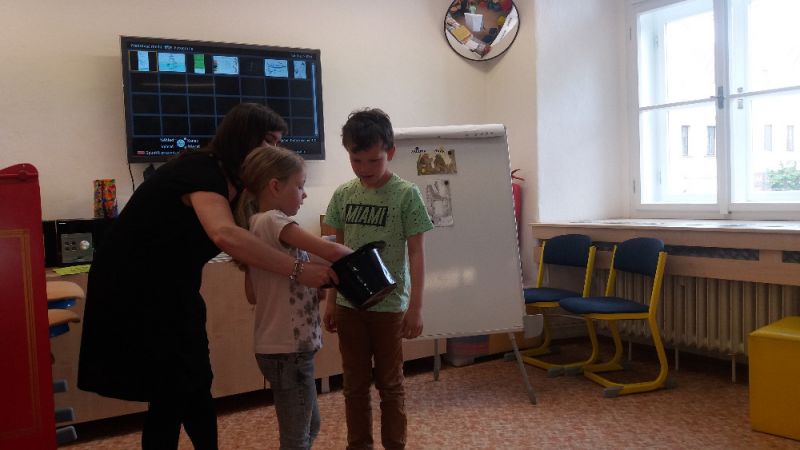 Ve středu 23.5.2018 jsme navštívili s 1. a 2. třídou Krajskou knihovnu v Havlíčkově Brodě. Byli jsme na programu "Už jsem čtenář - Knížka pro prvňáčka". Dnešním tématem byla beseda s názvem "K jako kamarádi". Celou dobu nás provázeli Kvak a Žbluňk a děti na konci měly za úkol složit obrázky s těmito kamarády podle přečteného příběhu. Po besedě si šli žáci vyrobit svoji vlastní záložku do knížky. Všem se moc povedla a celé dopoledne se nám velmi líbilo.