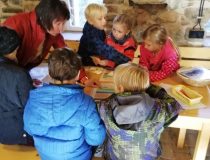Na závěr byli žáci v nově vybudované pekárně přítomní u samotného procesu kvašení, výroby a pečení bochánků chleba. Paní učitelka Kopecká dětem připomenula význam chleba, který člověka doprovází už po staletí, hodnotu potravin, proměny zemědělské krajiny a ekologické zemědělství.