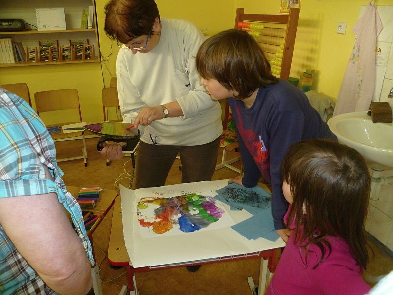 Rodičům při jejich tvorbě pomáhaly děti, které mají s touto technikou bohaté zkušenosti ze školní družiny. Jak se všem obrázky povedly, si můžete prohlédnout na přiložených fotografiích.