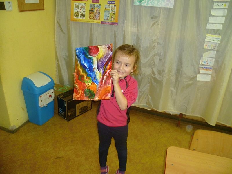 V páteční podvečer 7. března se ve škole sešli rodiče s dětmi, aby pod vedením p. učitelky Dobrovolné zkusili vytvářet kouzelné abstraktní obrázky technikou enkaustiky. Při tvorbě obrázků se nepoužívají štětce, ale speciální enkaustické žehličky, na něž se nanáší vosk a ten pak žehličkou na papír, kde můžete doslova čarovat s barvami podle vaší fantazie.