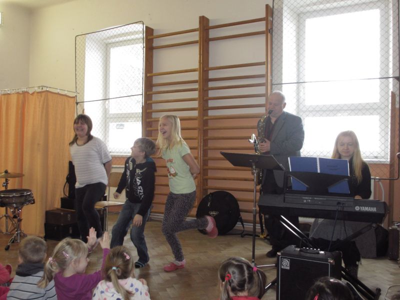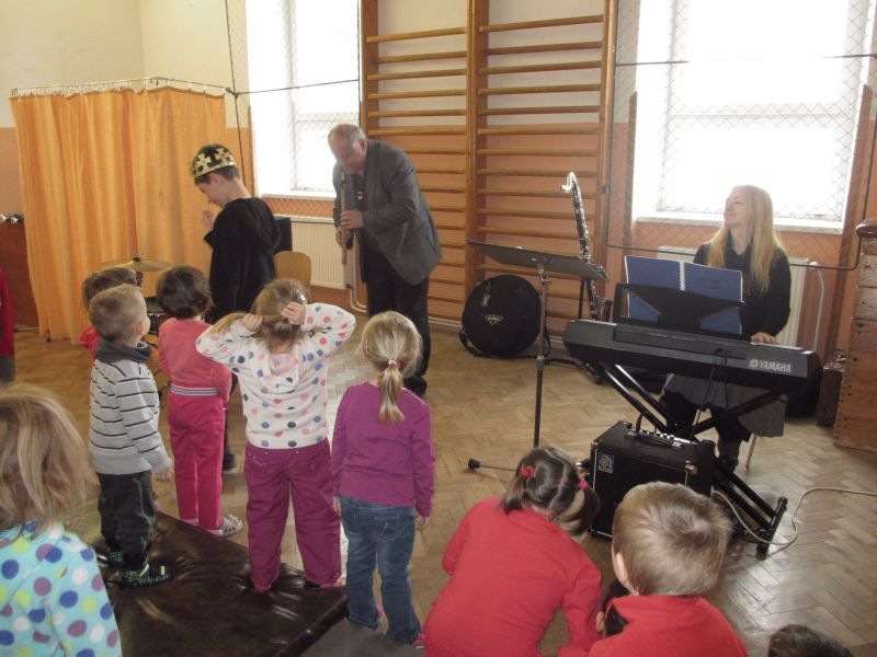 Celým pořadem nás příjemně provázeli pedagogové ze ZUŠ - Leoš Drahotský a Miroslava Smékalová, kteří nám představili celou řadu hudebních nástrojů. Děti se snažily názvy nástrojů zapamatovat, s některými se setkaly úplně poprvé jako třeba s klarinetem, violoncellem, saxofonem nebo příčnou flétnou. Pořad byl zakončen písní Není nutno doprovázenou na dudy i buben.