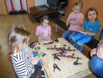 Děti byly seznámeny s opracováním dřeva drobnými dřevoobrábějícími nástroji a vše si samozřejmě vyzkoušely. Všichni si na konci programu odnášeli dvě vlastnoručně vyrobené dřevěné hračky a zářili spokojeností nad dobře odvedenou prací.