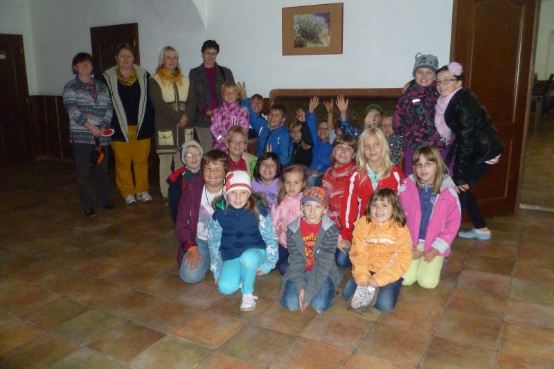 Ve středu 9.10.2013 jsme po obědě navštívili zámek v naší obci. Každý den kolem něho chodíme do školy, a tak jsme byli zvědaví , jak to vypadá uvnitř a v okolí zámku. Provázela nás paní M. Fárková. Všechny nás moc zajímalo, jestli tady na zámku straší. Paní Fárková nám ukázala místnost, kde prý straší a také jsme se mohli podívat, kde zřejmě začínala podzemní chodba. V zámeckém parku se nám líbila obora s daňky. Z balkónu jsme se podívali na naši vesnici z výšky a také jsme se zde vyfotili.