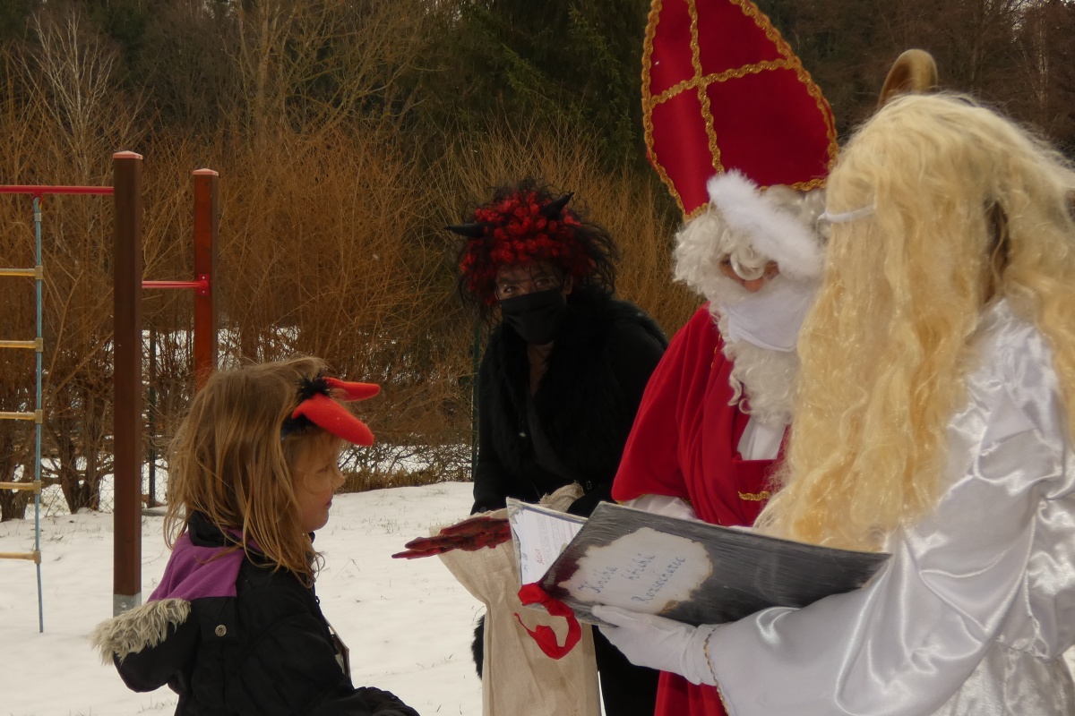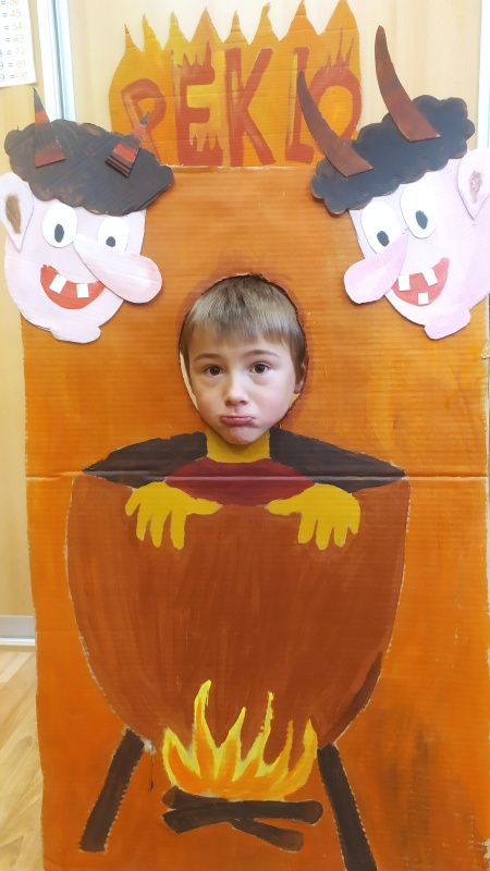 V pondělí 6. prosince se naše škola proměnila ve školu čertovskou. Místo dětí se ve škole objevili čertíci a čertice a dokonce mezi nás zavítal jeden andílek. Všechna čerťata zdobila upečené perníčky, pak četli čertovské pohádky, malovali obrázky a také navštívili Čertí horu, kde na ně čekal poklad.Kolem poledne potom školu navštívili Mikuláš s andělem a čertem a probíhala tradiční nadílka. Všichni si dopoledne moc užili.