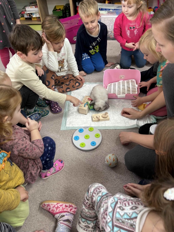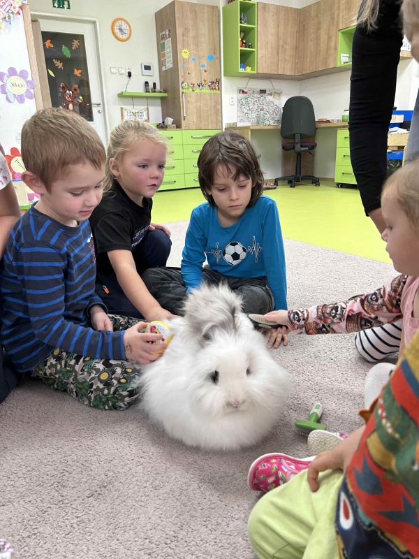 Dne 7. listopadu naše děti měly příležitost rozvíjet smysly s roztomilými králíčky. Děti si králíčky mohly pohladit, vyčesat, pochovat v pelíšku a pozorovat jejich pohyby při hledání schovaného pamlsku. Moc se nám toto setkání líbilo.