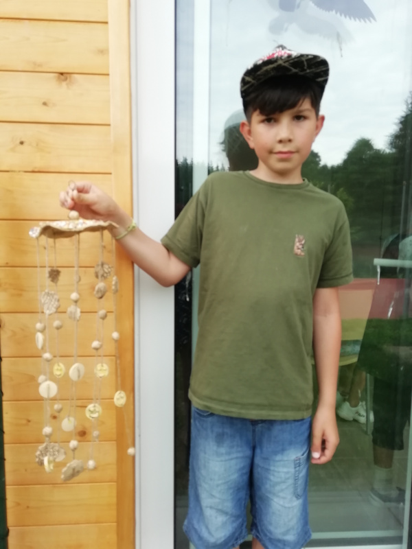 Tento školní rok jsme kvůli distanční výuce mnoho výrobků nezhotovili. V září jsme vyráběli květinové zápichy na jarmark. Jarmark se ale bohužel nekonal. V květnu jsme začali vyrábět zvonkohry. Mladší děti mráček s kapkami deště a starší děti větší závěs, který si každý dozdobil podle své fantazie. Každý si ještě vyrobil velké květiny jako zápich ven do záhonu. Jednu zapíchl poslední den školního roku do záhonu u školy.