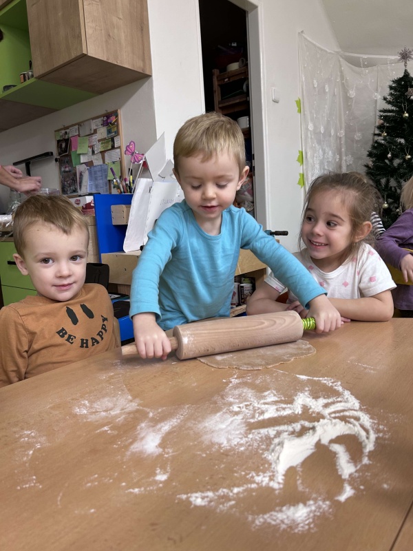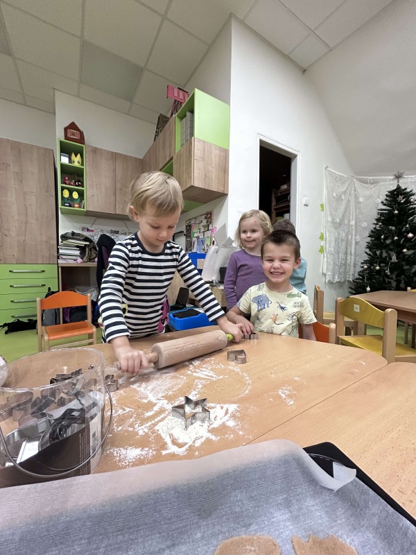 Tento týden si děti užily tradiční pečení perníčků, které provonělo celou školku. S nadšením vykrajovaly tvary, jako jsou hvězdičky, stromečky, vločky a srdíčka. Dopoledne se neslo ve vánoční atmosféře plné radosti a tvoření.