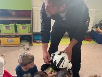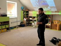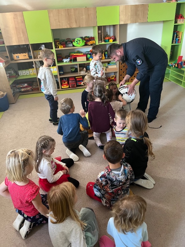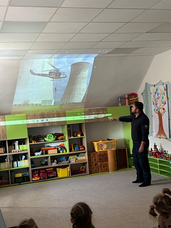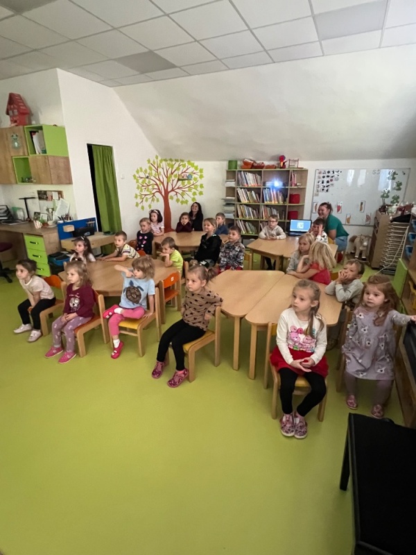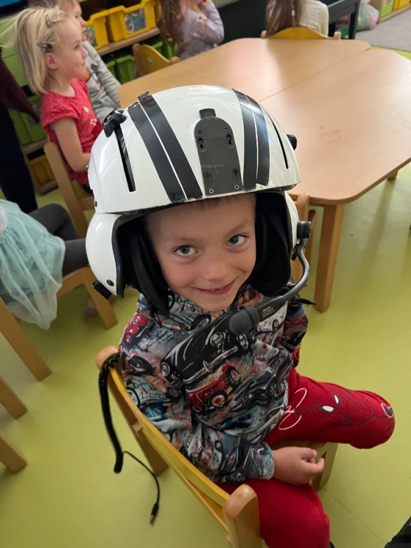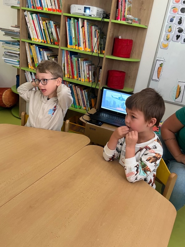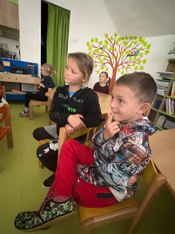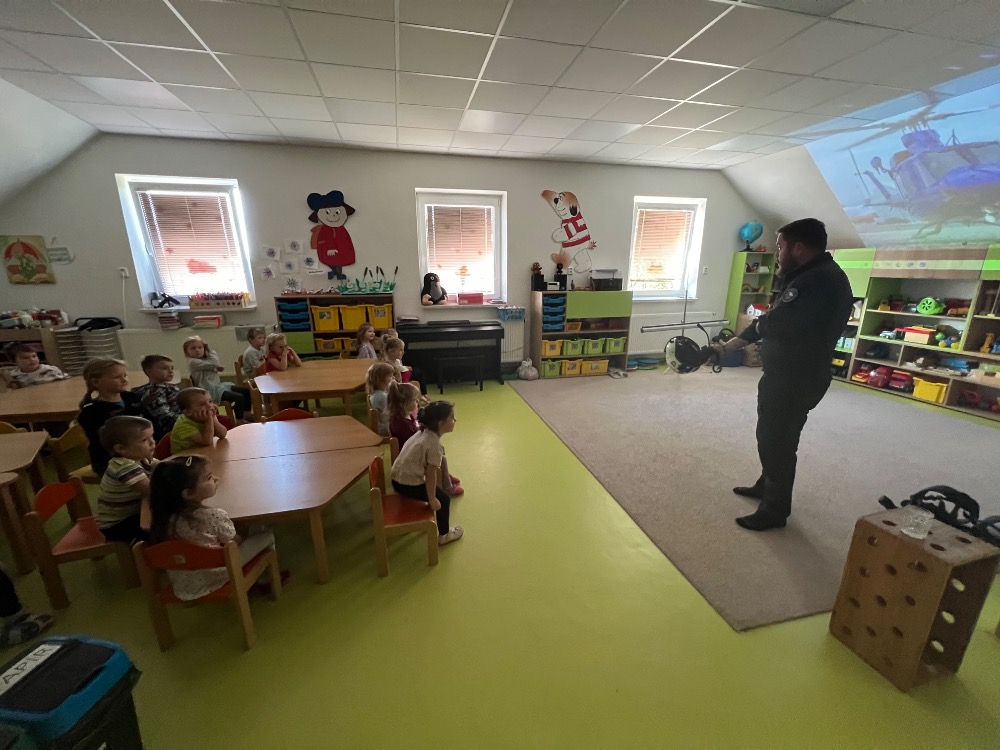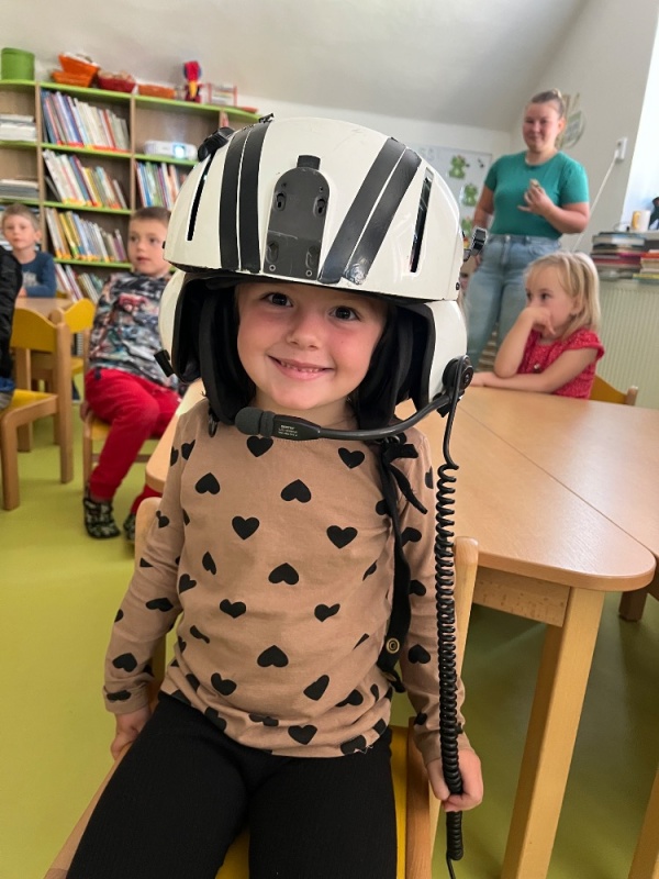 Dne 30.9.2025 k nám do školky dorazil pan Jan Dlesk s přednáškou o své práci. Pracuje jako policista-funkce palubní technik. Dozvěděli jsme se, jak se hasí požáry, jak vypadá vrtulník, jak se slaňují pro zraněné, a také jsme viděli na fotografii hangár plný vrtulníků. Pan Dlesk nám ukázal, jak se zachraňují lidé v lese, například když se ztratí a mnoho dalších ižitečných informací.