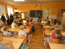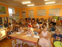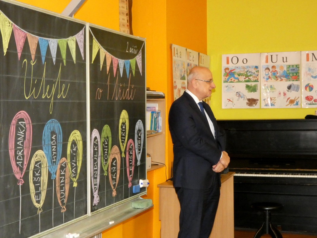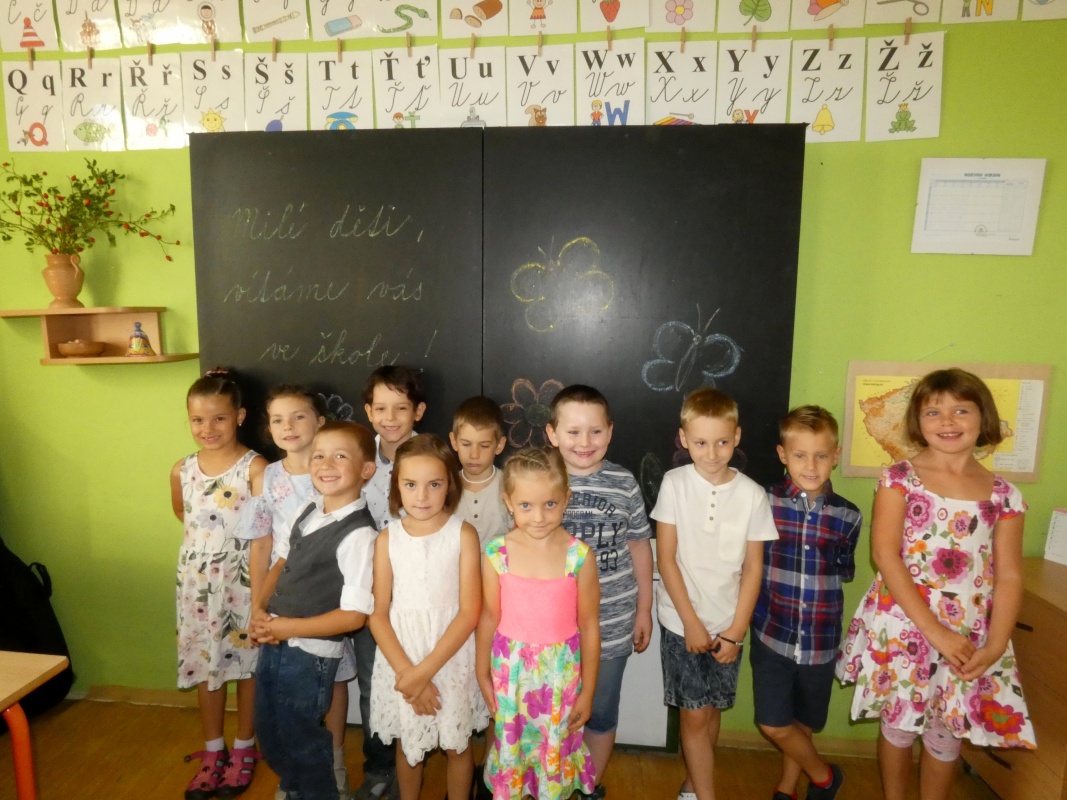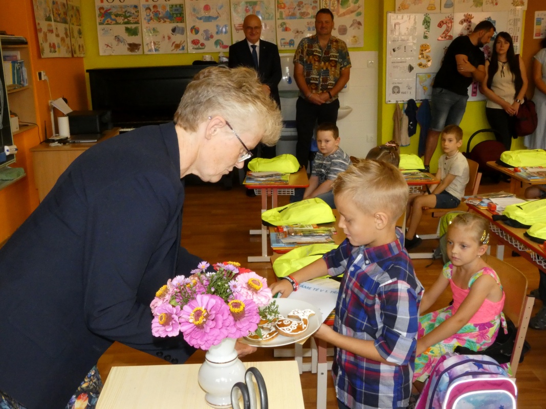 V 8.30 hod. pak začalo slavnostní přivítání prvňáčků, kterých je pro tento rok školní rok 11. Uvítání se zúčastnil rovněž senátor Mgr. Jan Tecl, který k dětem srdečně promluvil a popřál jim úspěchy nejen ve škole. Paní ředitelka Mgr. Hana Hertlová dětem představila jejich paní učitelku Mgr. Dagmar Losenickou, která je bude učit číst a psát a provede je prvním rokem školní docházky. Paní učitelka měla pro všechny žáčky i pana senátora malou pozornost, napekla jim perníkové kapříky, aby vším lehce proplouvali a byli svižní a bystří právě jako ti kapříci. Prvňáčky také přivítali starší kamarádi písničkou pod vedením Mgr. Jitky Doležalové. Celému slavnostnímu přivítání přihlíželi též rodiče a někteří sourozenci nových školáčků.