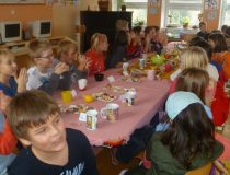 Na atmosféru Vánoc nás naladil hned brzy ráno svým vyprávěním a písničkami pan Roman Neumann. Po besedě děti připravily sváteční tabuli plnou dobrot a dozdobily stromeček. Pak následovalo zpívání koled, vánoční pohádka a po ní dlouho očekávané rozdávaní dárečků.