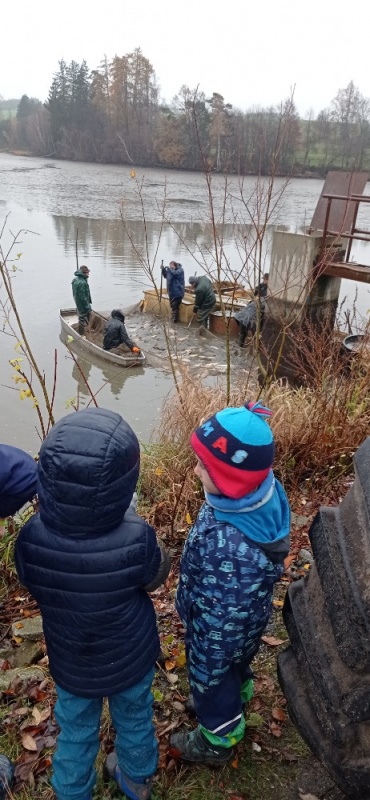 Děti ze školky se přišly podívat v pátek 18. 11. 2022 na výlov místního rybníka. V kádi s vodou jsme měli možnost vidět kapra se šupinami a další ryby. Všechny děti bedlivě sledovaly výlov rybníka a byly překvapeny, kolik lidských sil a technických strojů je potřeba k výlovu kapra. Bezpečně a plní zážitků jsme se pak vrátili zpět do mateřské školky a za rok zase na viděnou.