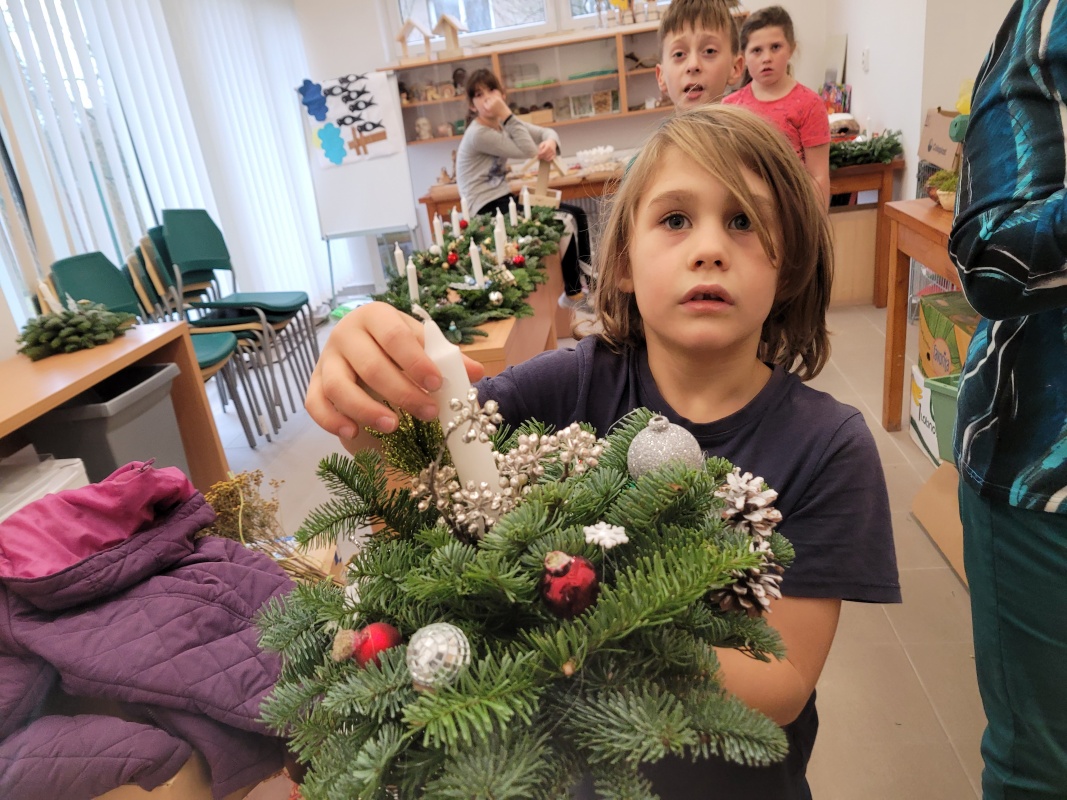 Ve čtvrtek 21.12. jsme ve škole přivítali paní Jindrovou, se kterou děti vyráběly adventní svícny a dřevěné anděly. Výrobky se všem povedli a my paní Jindrové moc děkujeme.