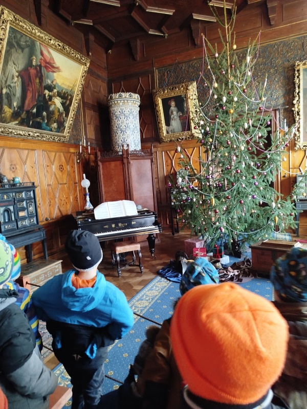 Během prohlídky na děti čekala procházka třpytivými honosnými salóny, zbrojnicí i tajemným zámeckým sklepením, které byly plné zdobených stromečků, voňavých perníčků a svátečních dekorací.